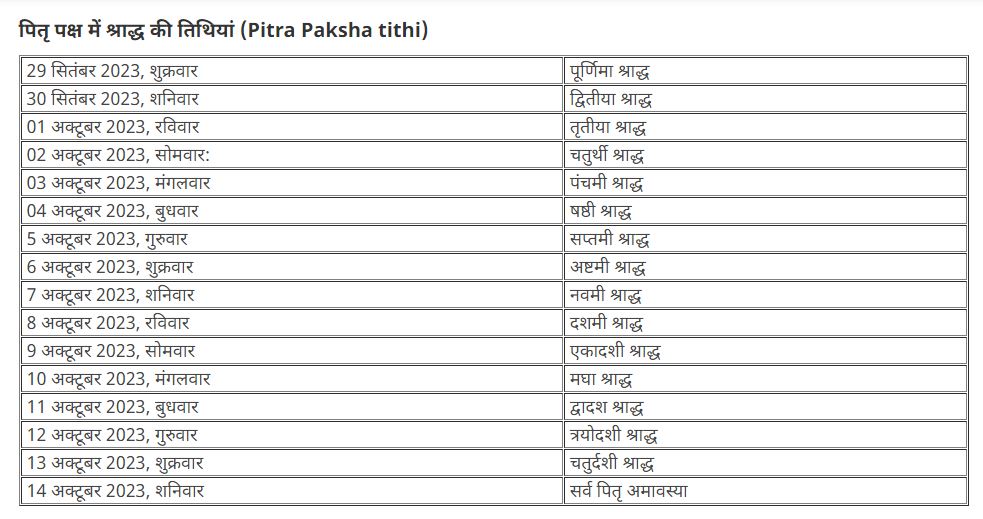 पितृ पक्ष 2023 तिथि (Pitry Paksha 2023 Tithiyan)