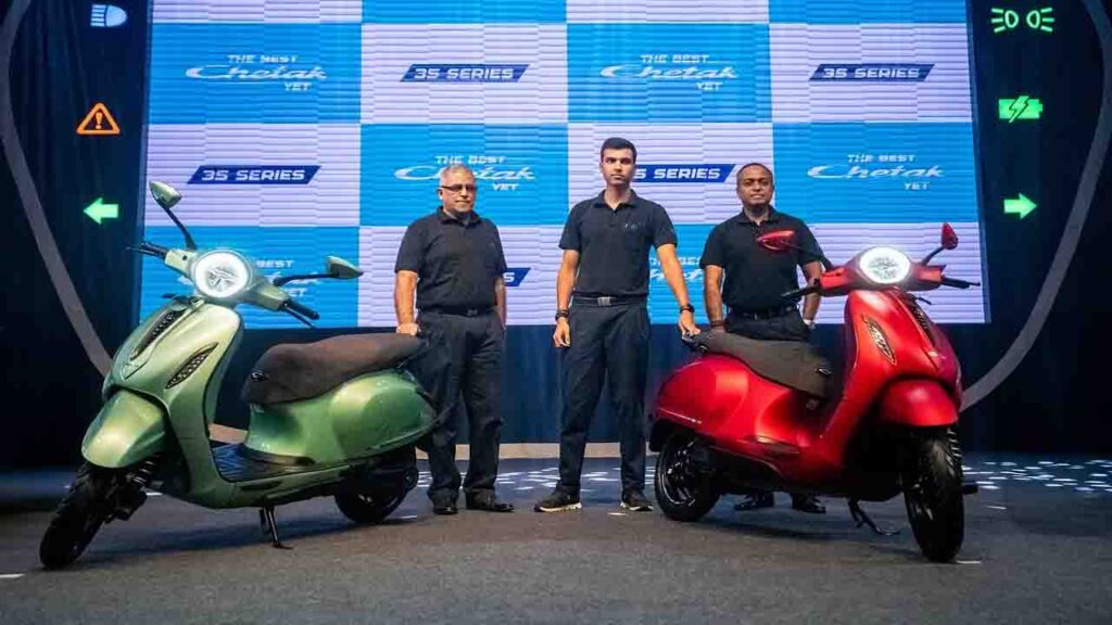 खबरों के मुताबिक ‘Chetak 35 Series’ की शुरुआती मूल्य 1,20,000 रुपये (एक्स-शोरूम, बेंगलुरु) है। नए चेतक में पिछले मॉडल की तुलना में कई तकनीकी सुधार किए गए हैं। यह स्कूटर पहले से बेहतर रेंज, स्टोरेज स्पेस और आराम प्रदान करता है। यह स्कूटर जल्द ही देशभर में बजाज डीलरशिप्स पर उपलब्ध होगा