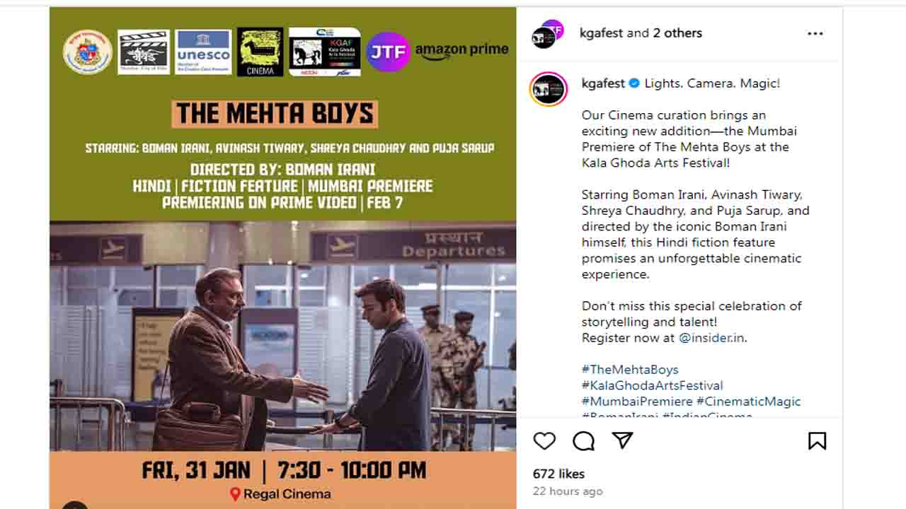 दर्शकों को ‘द मेहता बॉयज़’ को 7 फरवरी को प्राइम वीडियो पर ग्लोबल लॉन्च से पहले कला घोड़ा आर्ट्स फेस्टिवल में देखने का मौका मिलेगा।