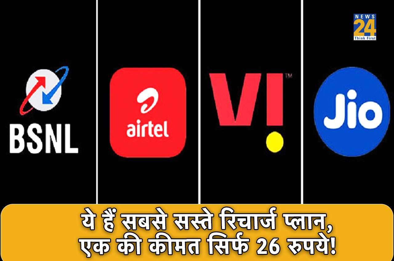 आज हम आपको इन चारों कंपनी के 100 रुपये से कम कीमत (Cheapest Recharge Plans) में आने वाले रिचार्ज प्लानों के बारे में बताने जा रहे हैं, जिनमें से एक प्लान की कीमत तो सिर्फ 26 रुपये से शुरू है। आइए जानते हैं कि किस प्लान में क्या बेनिफिट्स शामिल हैं।