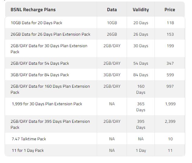 BSNL Best Recharge Plans 2024: List of Plans, Data, Validit