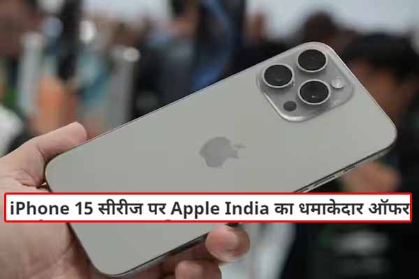 iPhone 15 series Discount : एप्पल की ऑफिशियल साइट पर दी गई जानकारी के अनुसार एप्पल आईफोन 15 सीरीज पर आपको 60,000 रुपये तक का डिस्काउंट मिल सकता है। आपको बता दें एप्पल का ये ऑफर दिल्ली और मुंबई में उनके रिटेल आउटलेट्स के साथ ऑनलाइन वेबसाइट पर भी मौजूद है। जिसमें iPhone 15 सीरीज खरीदने पर डायरेक्ट डिस्काउंट और एक्सचेंज ऑफर का फायदा मिलेगा। आइए जानते हैं आईफोन 15 सीरीज के स्मार्टफोन पर कितना डिस्काउंट मिल रहा है।
