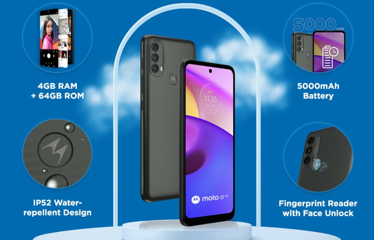 मोटोरोला मोटो ई40 में 6.5 inch का HD+ डिस्प्ले है। फोन के बैक में 48MP + 2MP + 2MP का रियर कैमरा है। इसके फ्रंट में 8MP का सेल्फी कैमरा है। फोन में 5000mAh की बैटरी और UNISOC T700 प्रोसेसर है।