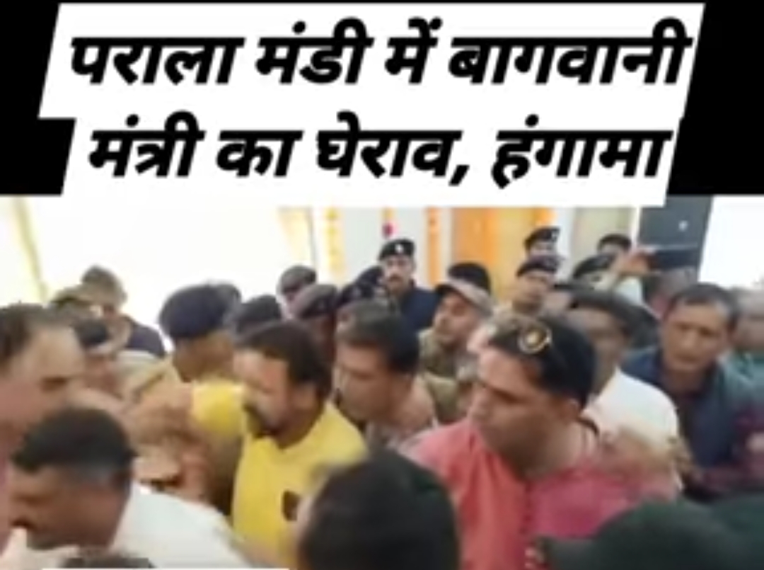 बागवानी मंत्री जगत सिंह नेगी के सामने पराला मंडी में बागवानों का प्रदर्शन, सरकार के खिलाफ़ हुई नारेबाजी