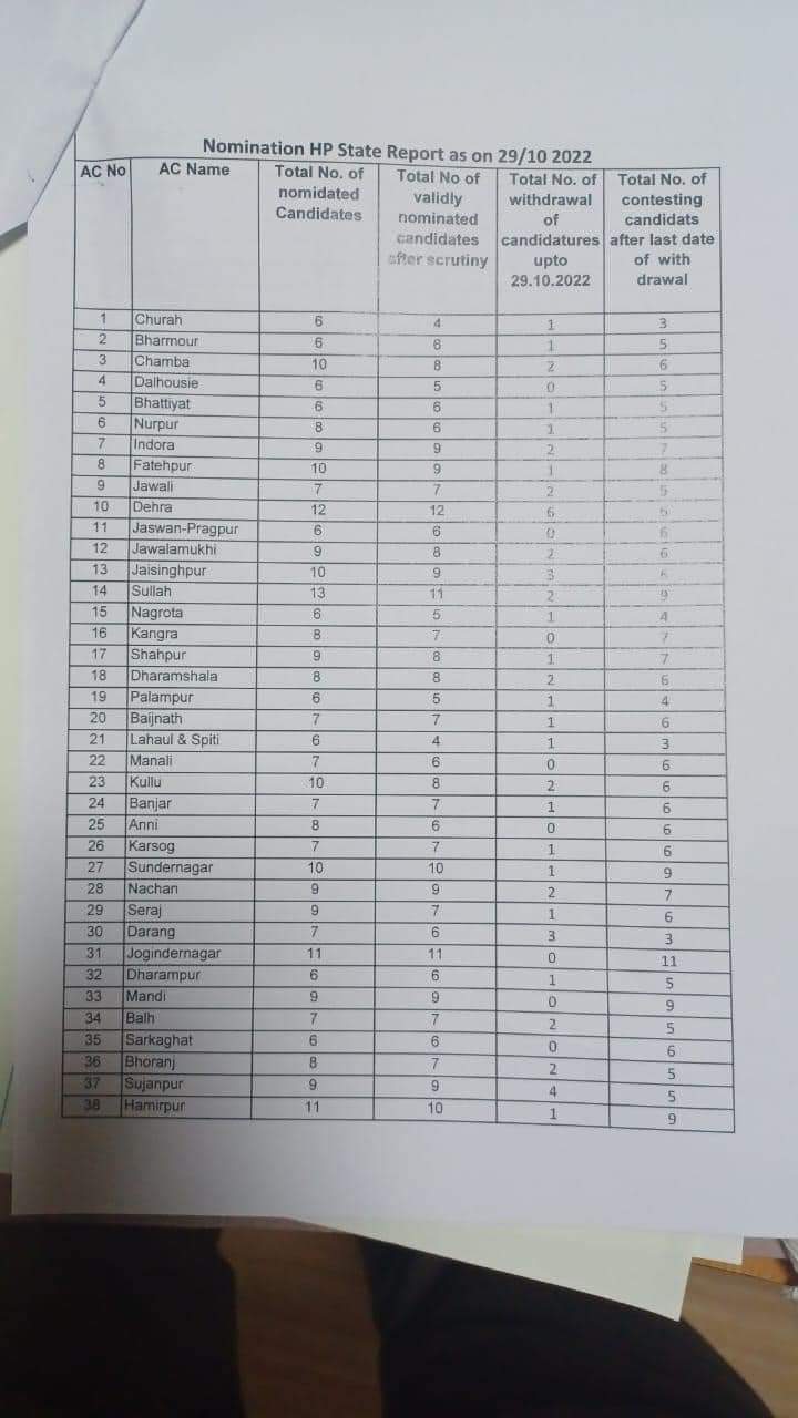 ब्रेकिंग न्यूज : हिमाचल की 68 विधानसभा में अब 413 उम्मीदवारों के बीच होगा मुक़ाबला