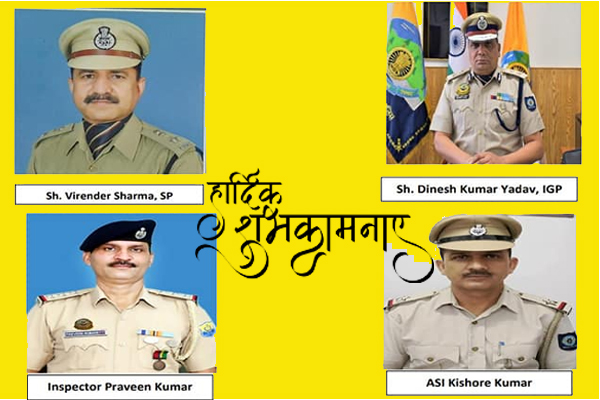 स्वतंत्रता दिवस 2022 के अवसर पर हिमाचल पुलिस के 4 अधिकारियों को विशिष्ट सेवाओं के लिए राष्ट्रपति पुलिस पदक और सराहनीय सेवाओं के लिए पुलिस पदक से सम्मानित करने के लिए चुना गया है। हिमाचल पुलिस बल के लिए बहुत की गौरव व सम्मान का क्षण है। इस बार स्वतंत्रता दिवस पर देश आजादी की 75वीं वर्षगांठ मना रहा है और इस शुभ अवसर पर हिमाचल पुलिस के 4 अधिकारियों केंद्रीय गृह मंत्रालय द्वारा इस प्रतिष्ठित सम्मान के लिए चुना गया है।
