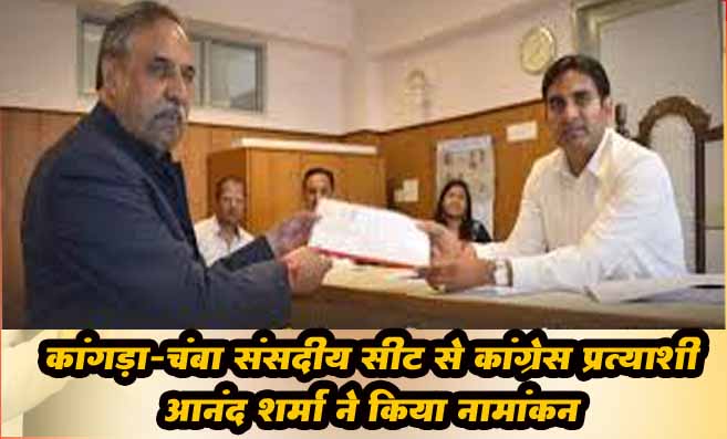 Anand Sharma Nomination: कांगड़ा-चंबा संसदीय सीट से कांग्रेस प्रत्याशी आनंद शर्मा ने आज नामांकन पत्र दाखिल कर दिया। उनके साथ विधानसभा स्पीकर कुलदीप पठानिया, कृषि मंत्री चंद्र कुमार, खेल मंत्री यादवेंद्र गोमा, रघुवीर सिंह बाली, सीपीएस राम कुमार व अन्य कांग्रेस नेता मौजूद रहे। नामांकन के बाद आनद शर्मा ने जोरावर स्टेडियम में रैली भी की।