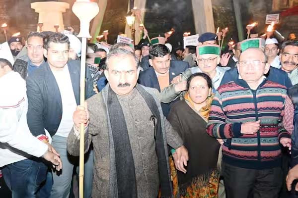 Congress Candle March in Shimla: शिमला के ऐतिहासिक रिज मैदान पर कांग्रेस ने मशाल जुलूस निकाला। हिमाचल कांग्रेस की ओर से आयोजित किए गए मशाल जुलूस में मुख्यमंत्री सुखविंदर सिंह सुक्खू और हिमाचल कांग्रेस अध्यक्ष प्रतिभा सिंह के साथ सैकड़ों कार्यकर्ताओं ने हिस्सा लिया।