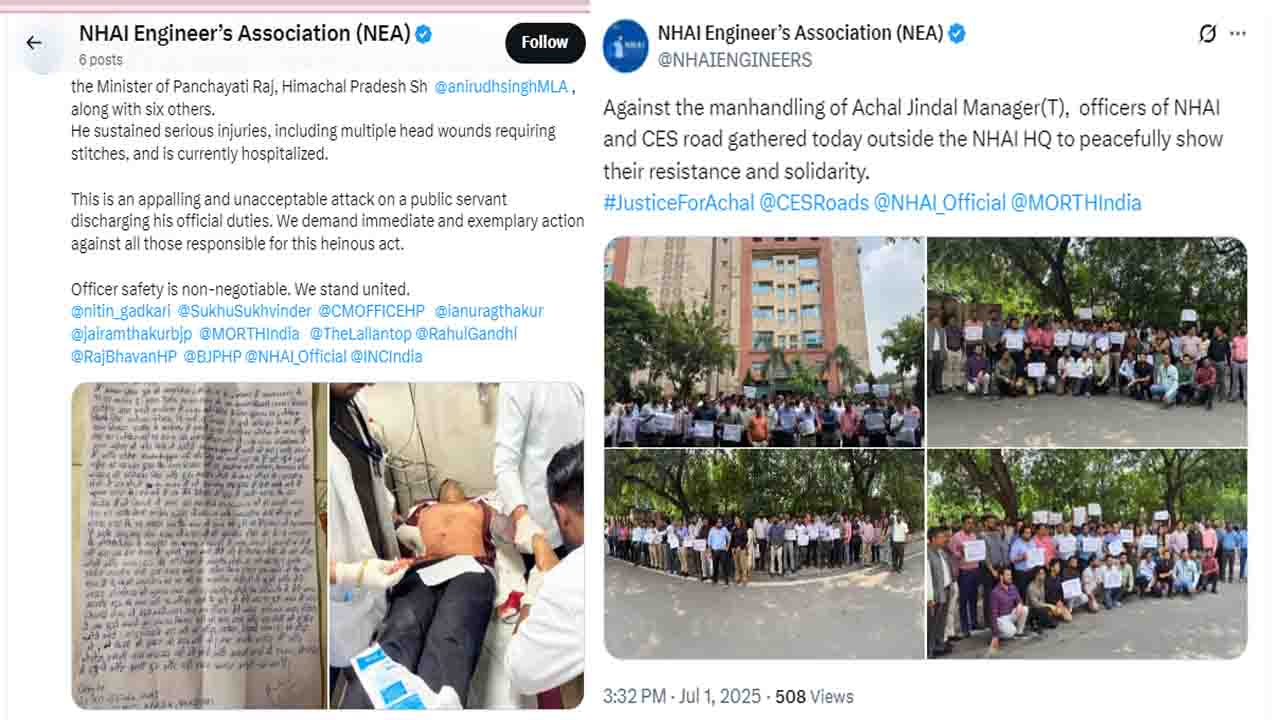 The heinous assault on Shri Achal Jindal, Manager, NHAI PIU Shimla, allegedly by the Minister of Panchayati Raj, Himachal Pradesh, and his associates, is deeply reprehensible and an affront to the rule of law. Such a brutal attack on a public servant performing his official…