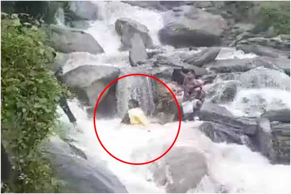 वीडियो में नजर आ रहा है कि चार दोस्त वॉटरफॉल में नहाने उतरे हुए हैं। अचानक पानी का बहाव बढ़ने के बाद आसपास के लोगों ने उन्हें बाहर आने के लिए कहा। पानी बहाव बढ़ने के बाद युवकों ने पानी से बाहर निकालने की कोशिश की, एक युवक पानी से बाहर भी निकल आया। लेकिन जैसे ही दूसरे युवक ने पानी से बाहर निकालने की कोशिश की, तभी उसका हाथ छूट गया और वहां पानी के तेज बहाव में बह गया।