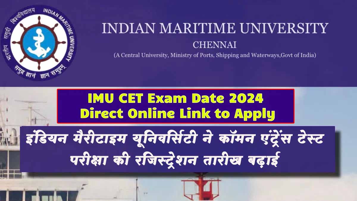 IMU CET Exam Date 2024: इंडियन मैरीटाइम यूनिवर्सिटी ने कॉमन एंट्रेंस टेस्ट परीक्षा की रजिस्ट्रेशन तारीख़ को बढ़ा दिया है, इस यूनिवर्सिटी से जो भी विद्यार्थी अपनी ग्रेजुएशन और पोस्ट ग्रेजुएशन की पढ़ाई पूरी करना चाहते हैं, वे अंतिम तारीख़ से पहले अपने रजिस्ट्रेशन की प्रक्रिया पूरी करके एडमिशन ले सकते हैं।