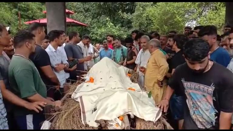जिला चंबा के तीसा में हादसे का शिकार हुए कांस्टेबल अभिषेक कुटलैहडिया का शनिवार को राजकीय सम्मान के साथ मिनी हरिद्वार जवाली में अंतिम संस्कार कर दिया गया। पुलिस टुकड़ी ने हवा में फायर दाग कर सलामी दी। मृतक पुलिस जवान अभिषेक कुटलैहडिया के छोटे भाई विनय कुटलैहडिया ने मुखाग्नि दी।