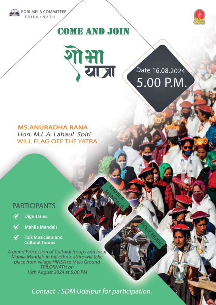 दूसरे दिन अर्थात् शनिवार को भगवान तीन त्रिलोकीनाथ के मंदिर से शोभा यात्रा निकाली जाती है, जिसमे स्थानी ठाकुर, मंदिर के कारदार तथा गणमान्य लोग इस शोभायात्रा में शामिल होते हैं। एक घोड़े को भी घुमाया जाता जिसकी पीठ कपड़े से ढकी होती है। माना जाता है की इस घोड़े पर त्रिलोकनाथ जी विराजमान होते हैं। परिक्रम के पश्चात् घोड़े की पीठ पसीने से लथपथ हो जाती है। उसके पश्चात् घोड़े को राणा के घर ले जाते हैं, जिस प सवार हो कर राणा शोभा यात्रा के साथ सम्मिलित हो कर अपने निजी सेवकों के साथ मेला स्थल के पास बने घ की छत में बैठ जाता है और मेले का आनंद लेता है।
