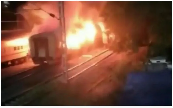 ट्रेन में आग लगने का एक वीडियो भी सामने आया है, जिसमें कोच में भीषण आग लगी नजर आ रही है। वहीं, कुछ लोग आसपास चिल्ला भी रहे हैं। मौके पर पहुंचे दमकल विभाग ने कड़ी मशक्कत के बाद आग पर काबू किया।