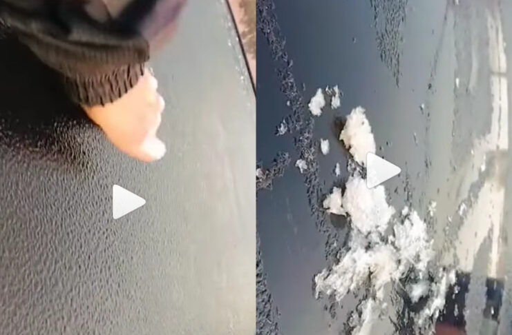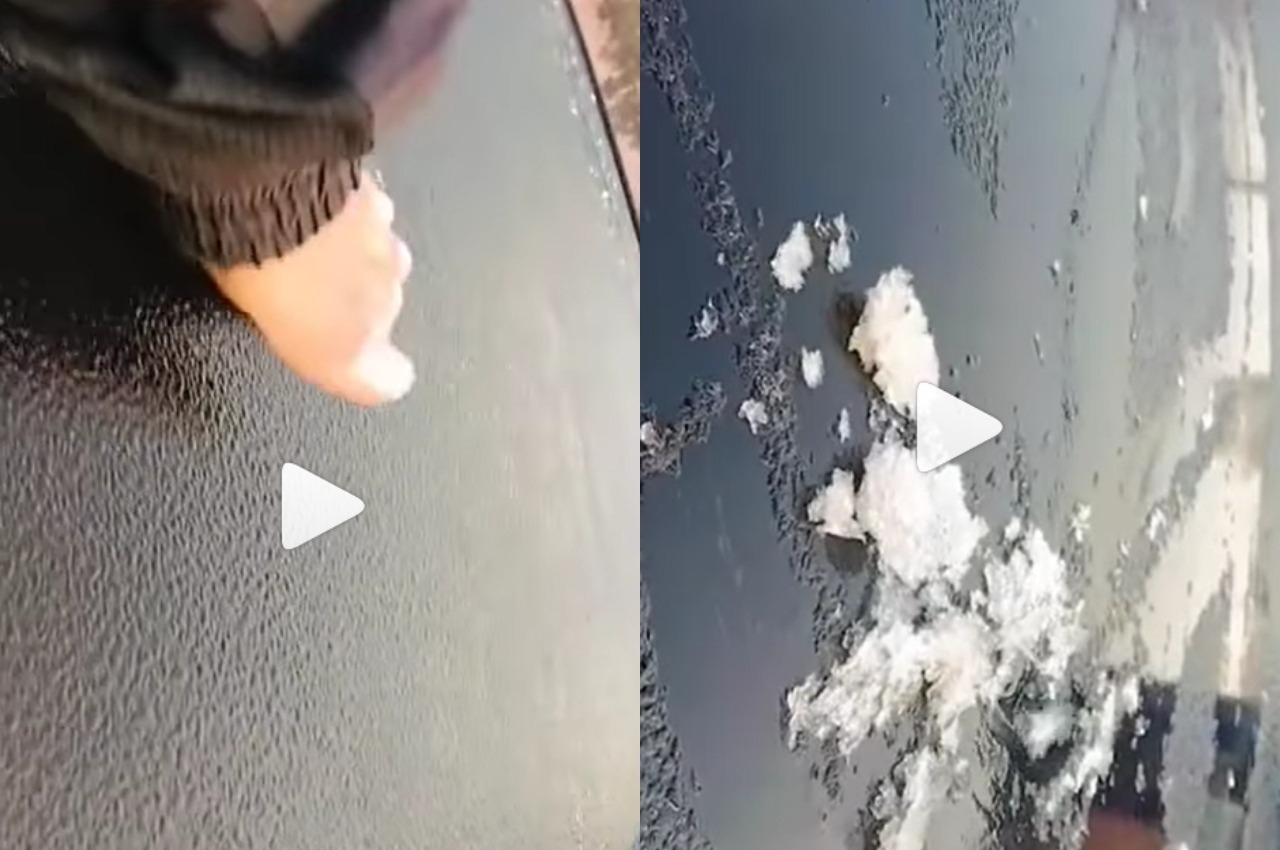 कार के शीशों से बर्फ हटाते हुए वीडियो वायरल