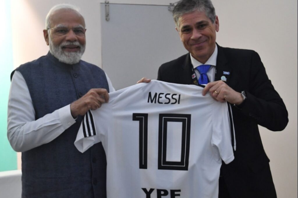 अर्जेटीना YPF के अध्यक्ष पाब्लो गोंजालेज ने पीएम मोदी को भेंट की मेसी की जर्सी