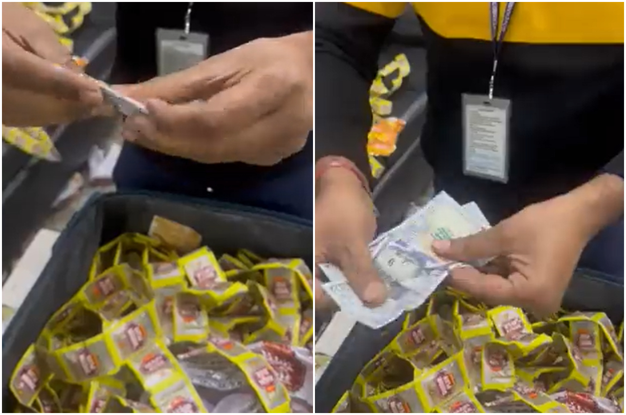 जानकारी के मुताबिक सोशल मीडिया वीडियो आया है। वीडियो में एक सीमा शुल्क अधिकारी पाउच को फाड़कर डॉलर  निकालते हुए दिख रहा है। पाउच के अंदर से 10 डॉलर के नोट निकलते दिख रहे हैं। जबकि कुछ पाउच में गुटखा भी है।