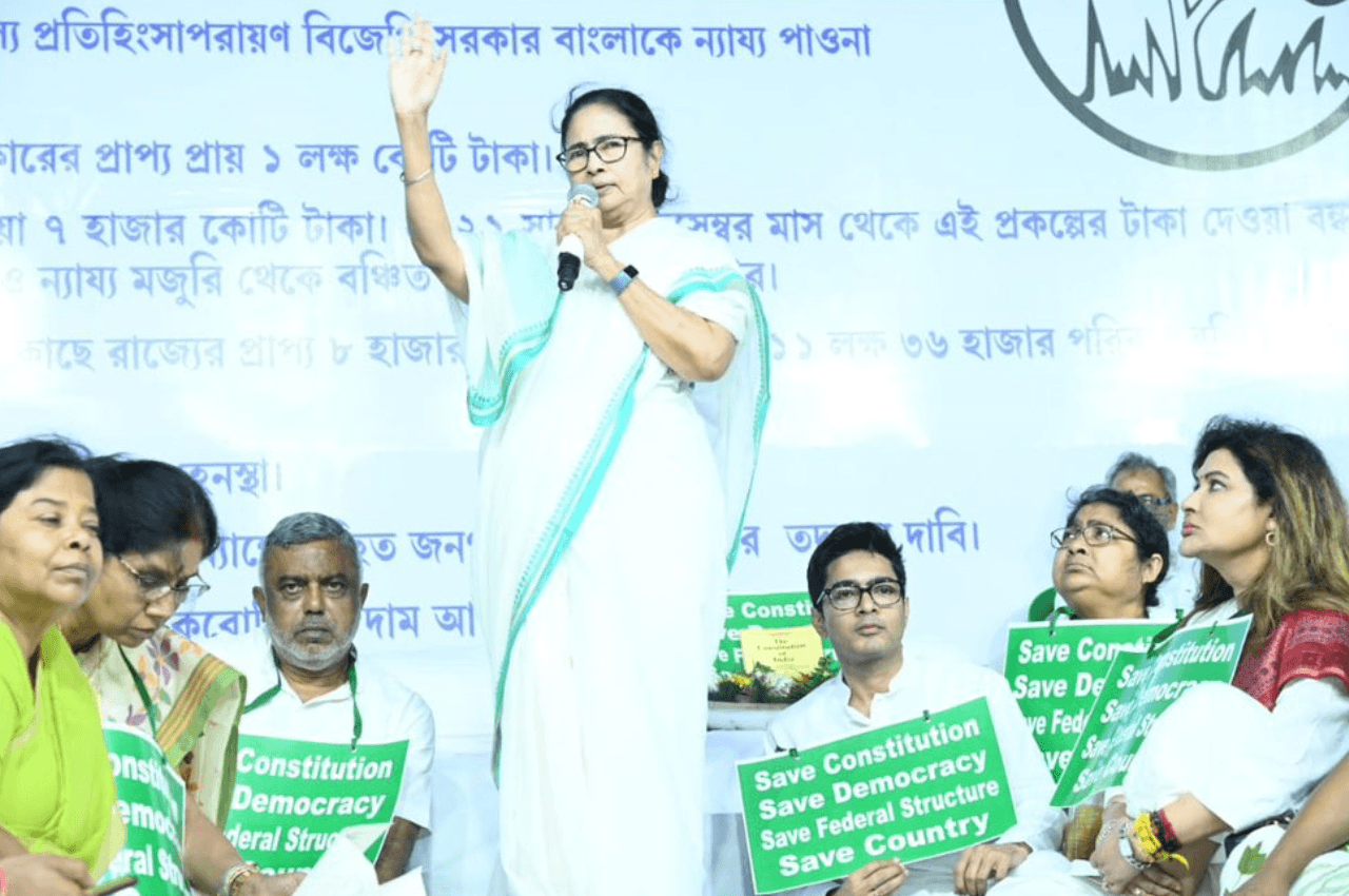 ◆ ममता बनर्जी केंद्र सरकार के ख़िलाफ़ भेदभावपूर्ण रवैये के विरोध में धरना दे रहीं हैं