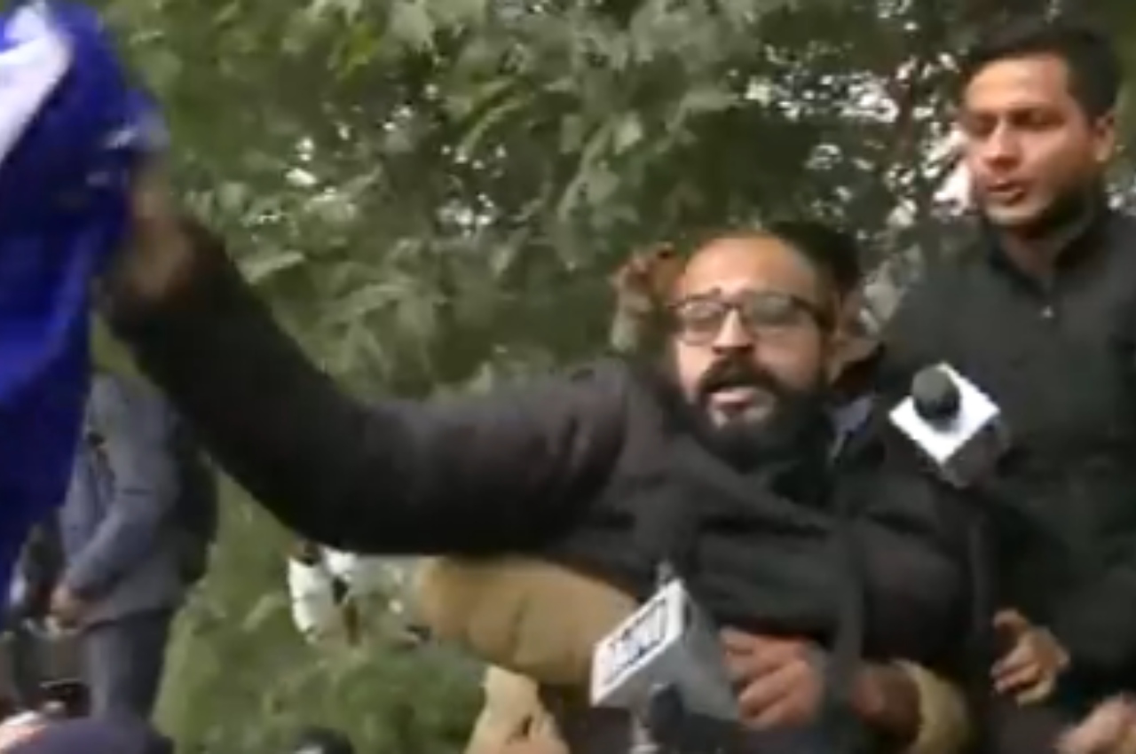 #WATCH | Delhi Police detains protesters who were sloganeering outside Jamia Millia Islamia University. pic.twitter.com/bmDX4dp2Yl