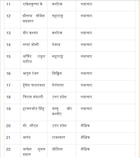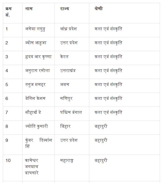 प्रधानमंत्री राष्ट्रीय बाल पुरस्कार 2021 के विजेताओं की सूची निम्नलिखित हैः