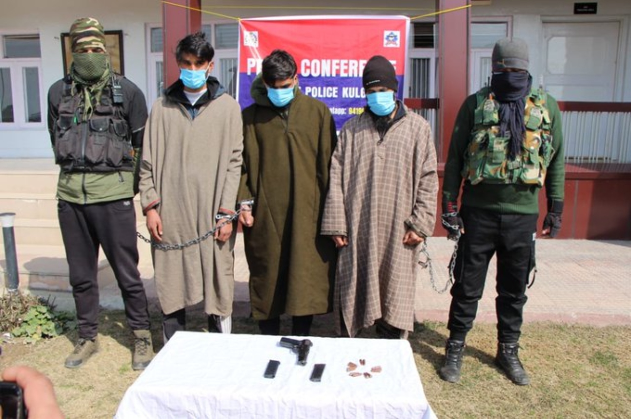 पुलिस ने आतंकियों से 1 पिस्टल, 2 पिस्टल मैगजीन और 13 जिंदा पिस्टल राउंड बरामद किए गए। पुलिस मामला दर्ज कर आगे की जांच कर रही है। पुलिस के अनुसार इनपुट मिला था कि आतंकी किसी वारदात को अंजाम देने की फिराक में हैं। सूचना के आधार पर तीनों को पकड़ा गया।