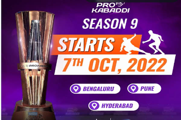 प्रो कबड्डी लीग के आयोजन की घोषणा कर दी गयी है। इस बार ये लीग 7 अक्टूबर 2022 से शुरू होगी, जो दिसंबर के मध्य तक चलेगी। मैच तीन शहरों बेंगलुरु, पुणे और हैदराबाद में आयोजित किए जाएंगे। लीग के आयोजकों ने कहा कि आने वाले हफ्तों में पीकेएल के सीजन 9 के लिए मैचों की घोषणा भी जल्द कर दी जाएगी।