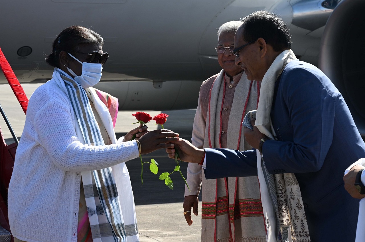 मध्य प्रदेश के राज्यपाल मंगूभाई पटेल और मुख्यमंत्री शिवराज सिंह चौहान ने राष्ट्रपति मुर्मू के इंदौर आगमन पर अगवानी की।