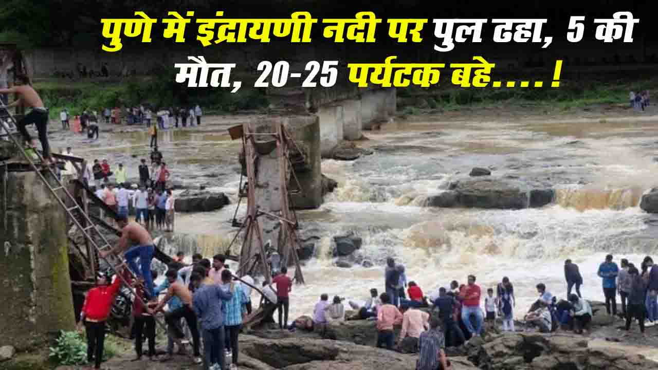 Pune Indrayani River Bridge Collapsed: महाराष्ट्र के पुणे जिले में एक बड़ा हादसा पेश आया है, जहां इंद्रायणी नदी पर बना एक पुल ढह गया। जिस समय यह पुल गिरा है तब उसपर कई लोग मौजूद थे। बता दें कि महाराष्ट्र के पुणे जिले में इंद्रायणी नदी पर बने पुल का आधा हिस्सा गिर गया है। इसे लेकर वीडियो भी सामने आए हैं।