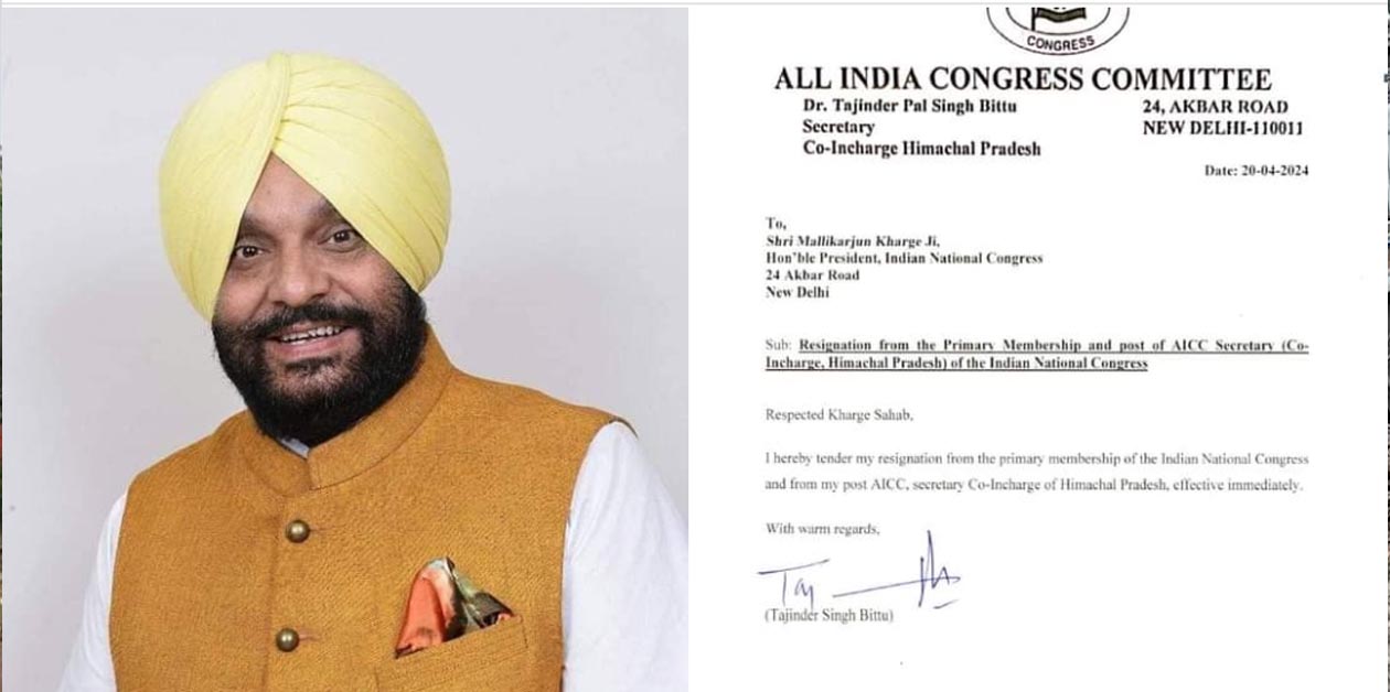 जिससे उन्होंने राजनीति में रि-एंट्री की थी। कांग्रेस के लिए यह झटका इसलिए बड़ा है क्योंकि तजिंदर सिंह बिट्टू के जालंधर के नेता नहीं बल्कि हिमाचल प्रदेश के सह-प्रभारी भी रहे हैं, जिस पद से उन्होंने 20 अप्रैल (शनिवार) को इस्तीफा दे दिया।