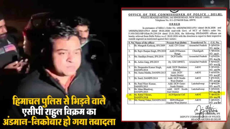 हो सकता है कि दिल्ली पुलिस की ओर से जारी आदेश रेगुलर तबादला प्रक्रिया का हिस्सा हो लेकिन इस क्रम में स्पेशल सेल में तैनात 2018 बैच के दानिप्स अधिकारी ACP राहुल विक्रम को तत्काल प्रभाव से अंडमान-निकोबार द्वीप समूह भेजना लोगों के बीच चर्चा का विषय बनी हुई है। दरअसल दिल्ली एआई समिट में शर्ट लेस प्रदर्शन के बाद हाल ही में ACP राहुल विक्रम का नाम हिमाचल प्रदेश से यूथ कांग्रेस कार्यकर्ताओं की गिरफ्तारी के मामले में चर्चा में आया था।