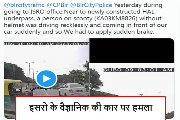 भारतीय अंतरिक्ष अनुसंधान संगठन (ISRO) के वैज्ञानिक बेंगलुरु में रोड रेज के शिकार हो गए। घटना का पूरा मामला साइंटिस्ट के कार के डैशबोर्ड में लगे कैमरे में रिकार्ड हो गया है। जानकारी अनुसार ISRO वैज्ञानिक आशीष लांबा पर एक स्कूटर सवार ने हमला करने की कोशिश की है। इसरो वैज्ञानिक आशीष लांबा ने वीडियो शेयर कर आरोपी के खिलाफ कार्रवाई की मांग की है।
