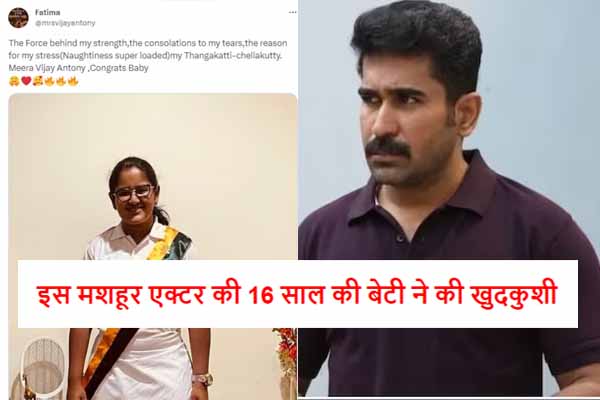 तमिल संगीतकार और अभिनेता विजय एंटनी (Vijay Antony) की बेटी मीरा ने 19 सितंबर को आत्महत्या कर ली। वह 16 साल की थीं और 12 क्लास की छात्रा थीं। मीडिया रिपोर्ट के मुताबिक, Vijay Antony और उनकी पत्नी फातिमा ने मंगलवार तड़के 3 बजे चेन्नई वाले घर में बेटी को फंदे पर लटका पाया है। आनन-फानन में मीरा को अस्तपाल ले जाया गया, जहां डॉक्टर्स ने उन्हें मृत घोषित कर दिया।