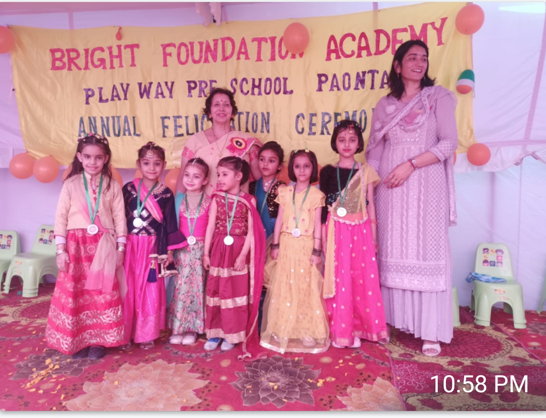 पांवटा साहिब के वार्ड नंबर 5 में यमुना विहार कॉलोनी में स्थित ब्राइट फाउंडेशन एकेडमी प्ले स्कूल के एनुअल डे फंक्शन पर स्कूल के छोटे-छोटे बच्चों ने अपने उम्दा परफॉर्मेंस से सभी का दिल जीत लेते हुए खूब तालियां बटोरी। स्कूल की प्रिंसिपल मंजू थापा ने बेहतरीन परफॉर्मेंस करने वाले बच्चों को इनाम देकर सम्मानित किया