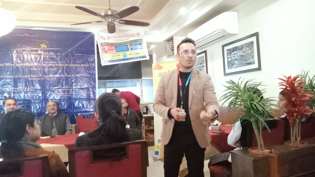 भारतीय रिजर्व बैंक के निर्देशानुसार बुधवार को जिला सोलन में राष्ट्रव्यापी संघन जागरूकता अभियान सोलन दी माल रोड हिमानी होटल मे कार्यक्रम आयोजित हुआ अग्रणी जिला प्रबंधक यूको बैंक श्री आर के बाली की अध्यक्षता में आयोजित ग्राहक शिकायत निवारण ग्राहक अधिकार एवं सुरक्षित बैंकिंग के प्रथाओं पर जागरूकता अभियान में सोलन एवं क्षेत्र से लगभग 75 प्रतिभागियों ने कार्यक्रम में हिस्सा लेकर विशेष तौर पर ऑनलाइन बैंकिंग से होने वाले विभिन्न तरह के फ्रॉड के बारे में विस्तार से जानकारी हासिल की।