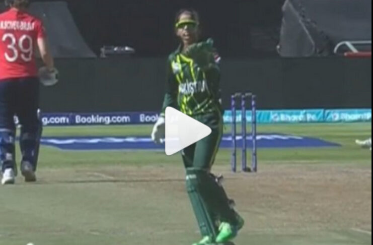 हुआ यूं कि 14वें ओवर में इंग्लिश टीम 125 रन ठोक चुकी थी। अगला ओवर फातिमा सना डालने आईं तो नेट सीवर ब्रंट ने दूसरी ही गेंद पर चौका ठोक उनकी लय बिगाड़ दी। तीसरी गेंद पर ब्रंट ने एक रन लेकर एमी जोंस को स्ट्राइक दे दी, लेकिन फातिमा सना ने अगली गेंद नो बॉल डाल दी। चौथी गेंद दोबारा डाली गई तो जोंस ने इस पर दो रन ले लिए। इसके बाद अगली गेंद पर जोंस ने एक बार फिर फाइन लेग की ओर रन चुराने की कोशिश की, वह बॉल की लेंथ तक गईं और ऑफ स्टंप से दूर उठाकर बॉल को फाइन लेग की दिशा में मोड़ दिया, लेकिन ये क्या?