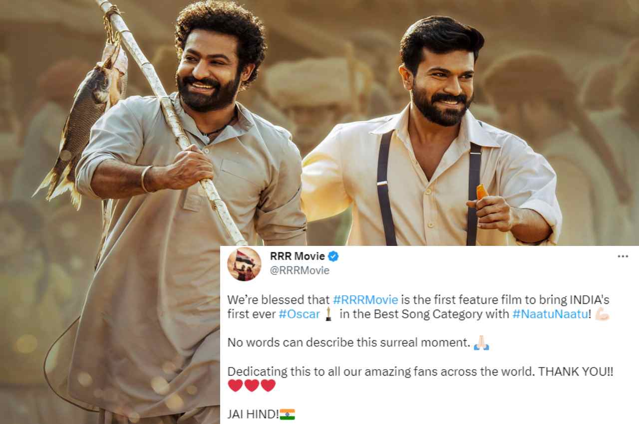 ट्विटर पर टीम RRR ने अपनी प्रतिक्रिया शेयर करते हुए लिखा कि हम धन्य हैं कि RRR मूवी भारत की पहली फीचर फिल्म है जो बेस्ट सॉन्ग कैटेगरी में भारत के लिए पहला ऑस्कर लेकर आई है। टीम RRR ने कहा कि इस पल को शब्दों में बयां नहीं किया जा सकता है। इस अवॉर्ड को दुनियाभर में हमारे फैंस को समर्पित करते हैं। जय हिंद!
