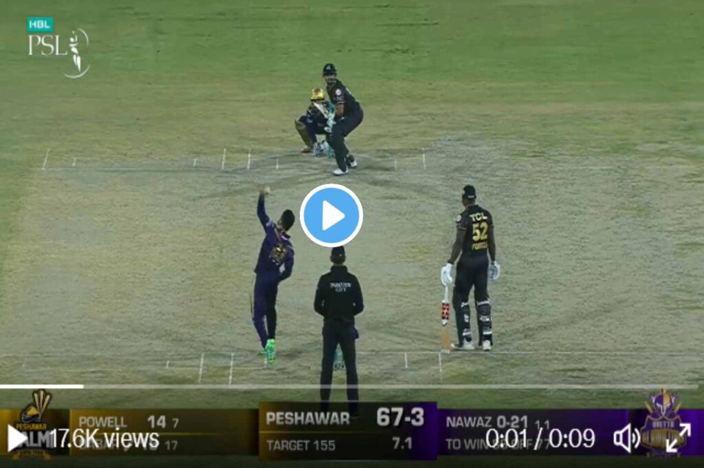 लेफ्ट ऑर्म स्पिनर मोहम्मद नवाज क्वेटा ग्लैडिएटर्स की तरफ से खेल रहे हैं। वह अपनी टीम केलिए 8वां ओवर लेकर आए थे। इस ओवर की दूसरी गेंद पर उन्होंने बाबर आजम का शिकार किया। उन्होंने स्टंप के सीध में बॉल डाली, जिसे बाबर आजम पूरी तरह मिस कर गए और LBW आउट हुए।