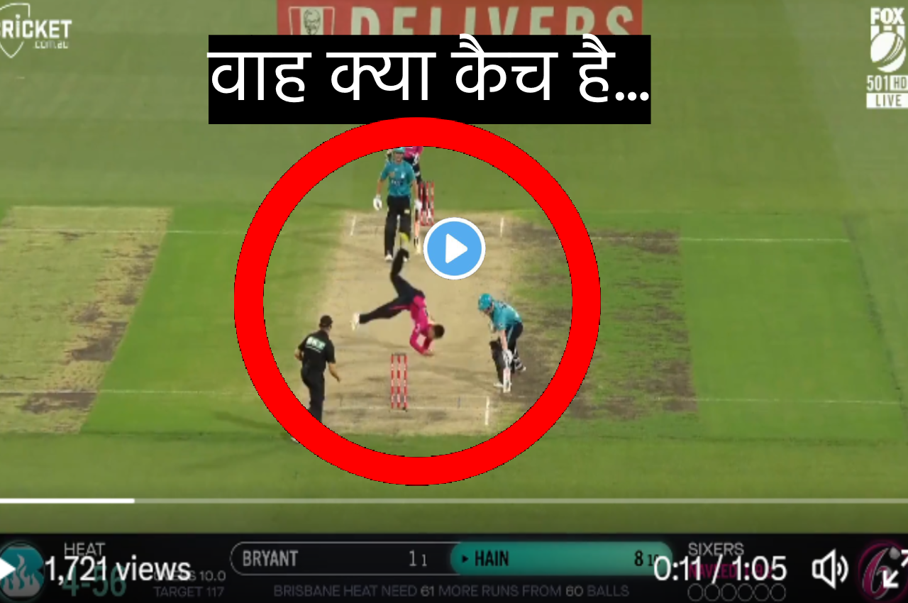 दरअसल, इस में जब सिडनी सिक्सर्स बैटिंग कर रही थी, तभी 11वें ओवर में यह अद्भुत कैच लपका गया। Izharulhaq Naveed अपनी टीम Brisbane Heat के लिए 11वां ओवर लेकर आए थे, इस ओवर की पहली ही गेंद पर उन्होंने बल्लेबाज सैम हेन को फंसा लिया और डाइव लगाते हुए अद्भुत कैच पकड़ लिया। बॉलर गेंद को अपने पास आता देख उस पर झपटा और गुलाटी मारते हुए कैच पकड़ लिया।