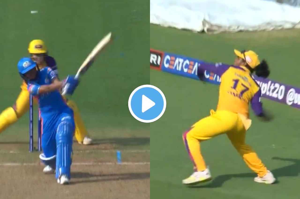 हरमनप्रीत कौर तेजी से रन बनाने के चक्कर में आउट हो गई। हरमन ने सिमरन शेख की गेंद पर आगे निकल तेज शॉट खेला। लेकिन बाउंड्री पर फील्डिंग कर रही दीप्ति शर्मा ने उनका शानदार कैच लपक लिया। जिससे हरमन को पवेलियन लौटना पड़ा। हरमन के विकेट से मुंबई का स्कोर रुक गया।