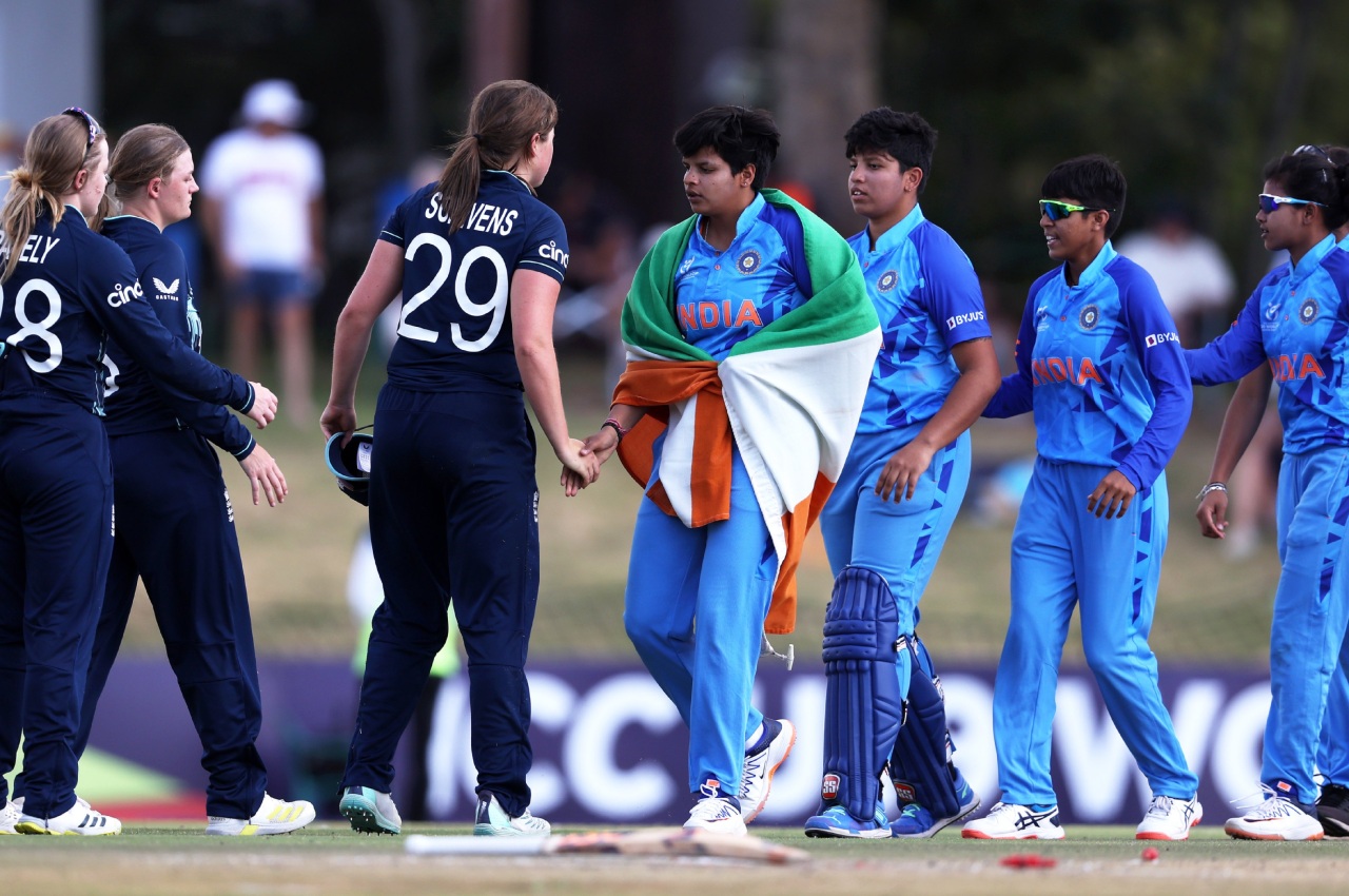 बता दें फाइनल में टीम इंडिया ने इंग्लैंड को 8 विकेट से रौंदकर वर्ल्ड कप पर कब्जा किया है। खिताबी मुकाबला साउथ अफ्रीका के पोचेफस्ट्रूम स्थित सेनवेस पार्क (Senwes Park, Potchefstroom) में खेला गया। इस मैच में भारत ने टॉस जीतकर पहले गेंदबाजी का फैसला किया। भारतीय कप्तान शेफाली वर्मा का फैसला सही साबित हुआ और टीम इंडिया ने इंग्लैंड को 17.1 ओवर में महज 68 रन पर ऑलआउट कर दिया।