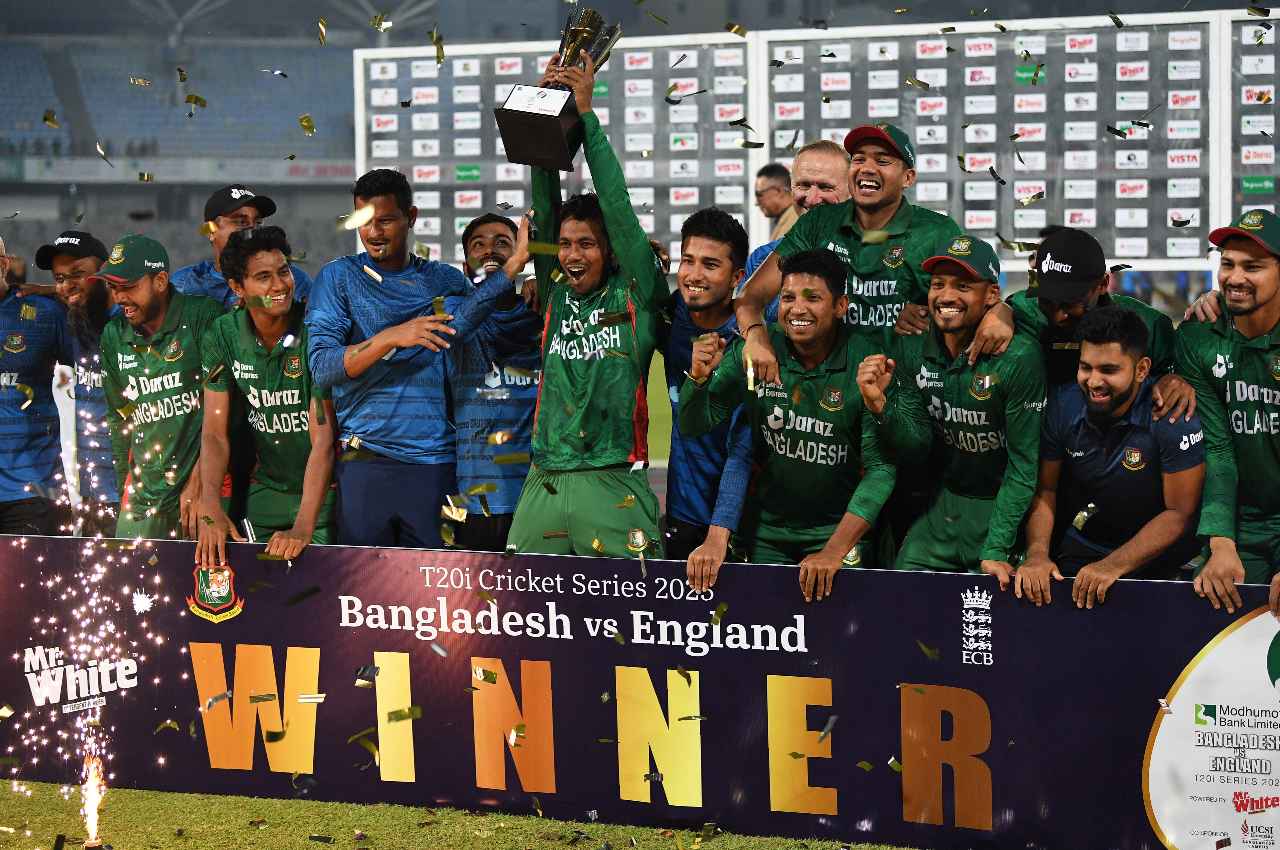 बांग्लादेश ने घर में इंग्लैंड को तीनों मैचों में हराया। खास बात यह है कि बांग्लादेश और इंग्लैंड के बीच यह पहली टी-20 सीरीज हुई थी, लेकिन पहली ही सीरीज में बांग्लादेश ने जीत हासिल करके क्रिकेट में सनसनी फैला दी है। क्योंकि जब सीरीज शुरू हुई थी, तब शायद लोगों को इस बात का यकीन नहीं होगा कि इंग्लैंड इतनी बुरी तरह से हार जाएगी।