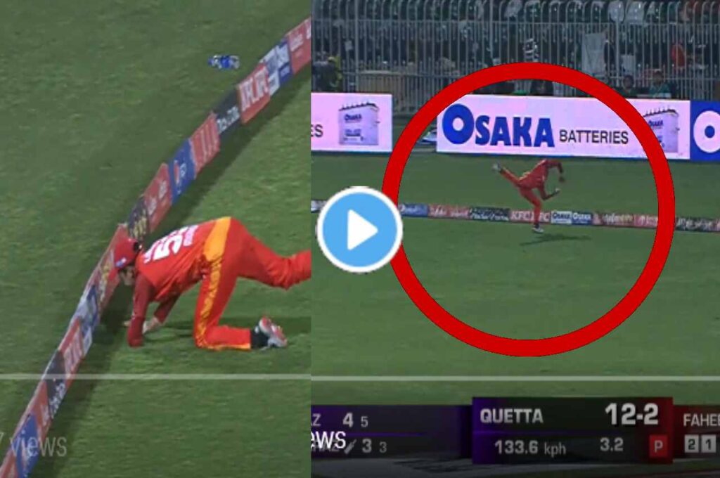 दरअसल, अपनी टीम के लिए फहीम अशरफ पारी का 6छठवां ओवर डालने आए थे। इस ओवर की तीसरी गेंद पर उन्होंने सरफराज अहमद को फंसा लिया। गुड लेंथ बॉल को बल्लेबाज ने डीव मिड विकेट के ऊपर से छक्के के लिए भेजने का प्रयास किया था, लेकिन बीच में Mubasir Khan आ गए और असंभव कैच पकड़र सोशल मीडिया पर छा गए। सरफराज 4 गेंद में 3 रन बनाकर आउट हुए।