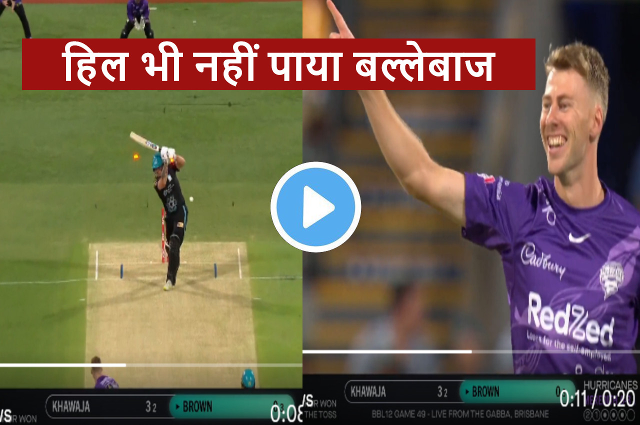ब्रिसबेन हीट को शुरुआत में ही तेज गेंदबाज Riley Meredith ने Josh Brown ने बड़ा झटका दिया है। उन्होंने सटीक लाइन और तेज रफ्तार वाली यॉर्क गेंद से बल्लेबाज को क्लीन बोल्ड कर दिया है। जैसे ही गेंद ने गिल्लियां उड़ाईं तो बल्लेबाज हैरान रह गया, उसे यकीन ही नहीं हुआ कि आखिर गेंद कब स्टंप में घुस गई।