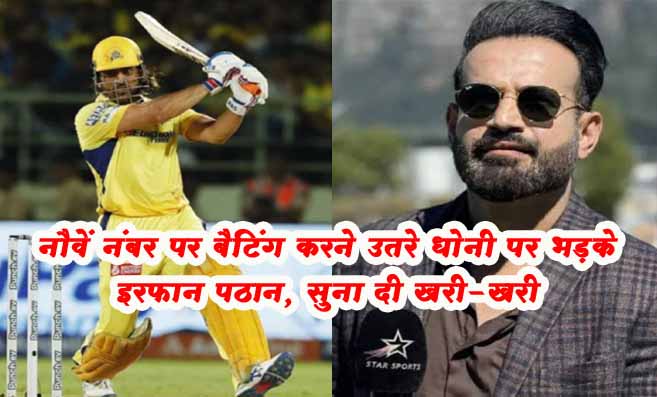 दरअसल,रविवार को धर्मशाला क्रिकेट स्टेडियम पंजाब किंग्स के सामने जब चेन्नई सुपर किंग्स के विकेट लगातार गिरते जा रहे थे। इसी बीच महेंद्र सिंह धोनी अपना बैटिंग ऑर्डर नीचे करते गए और टी-20 करियर के 393वें मैच में नंबर-9 पर बल्लेबाजी करने आए तो गोल्डन डक पर आउट होकर चले गए। इस तरह धोनी के नंबर-9 पर बल्लेबाजी करने और शून्य पर पवेलियन जाने से स्टार स्पोर्ट्स पर कमेंट्री के दौरान धोनी की ही कप्तानी में कई साल तक टीम इंडिया से खेलने वाले इरफ़ान पठान भड़क उठे।