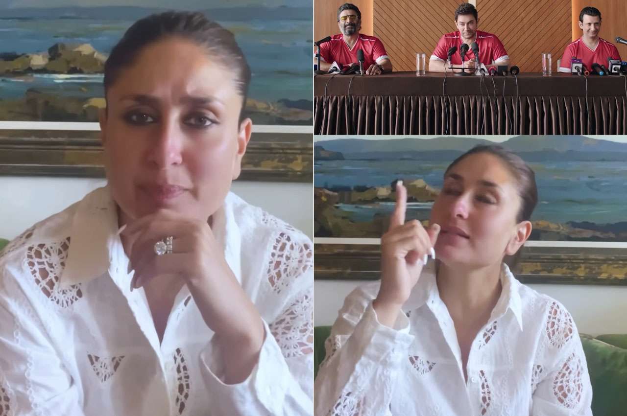 वीडियो में करीना इस फोटो की ओर इशारा करते हुए कहती है कि- “ मुझे अभी पता चला है जब मैं छुट्टी पर गई हुई थी और ये तीनों कुछ ला रहे हैं, प्रेस कॉन्फ्रेस का किल्प जो छाया हुआ है वो सीक्रेट हमसे छुपा रहे हैं, कुछ तो गड़बड़ है, प्लीज ये मत कहना है कि ये शरमन जोशी का मूवी प्रमोशन है।