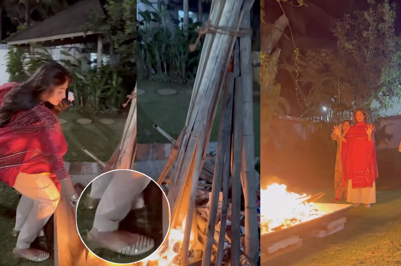 होलिका दहन की पूजा करती नजर आई एक्ट्रेस