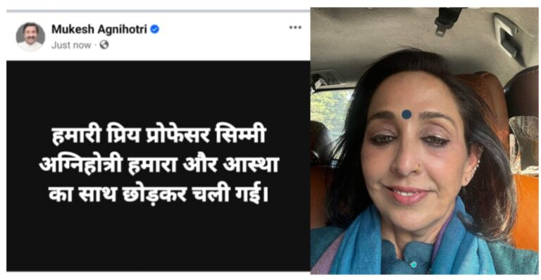 दुखद : उप मुख्यमंत्री मुकेश अग्निहोत्री की धर्मपत्नी सिम्मी अग्निहोत्री का हार्ट अटैक से निधन