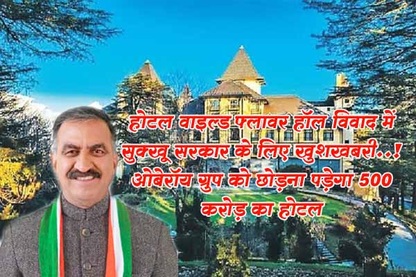 होटल वाइल्ड फ्लावर हॉल विवाद में सुक्खू सरकार के लिए खुशखबरी.! ओबेरॉय ग्रुप को छोड़ना पड़ेगा 500 करोड़ का होटल